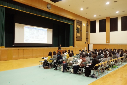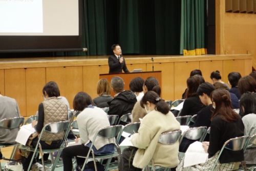 2月22日(土)、講堂にて2年生保護者対象の「進路に関する保護者会」を行い、約300名の保護者の方が出席されました。2年生学年主任のあいさつに始まり、就職、進学についての具体的な内容、本校の取り組み等について話がありました。
