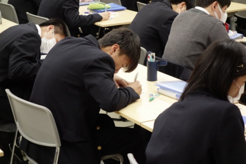 そして第2回目となる26日にも時間を変更して講座が開講され、春休みにもかかわらず多くの生徒が学校まで足を運び、受講しました。小論文講座では小論文養成だけでなく、マナーや言葉遣いなども身につき、さまざまな面で成長し、大学入試だけでなく大学生活や社会に出てからも必要であり、役立つものになります。