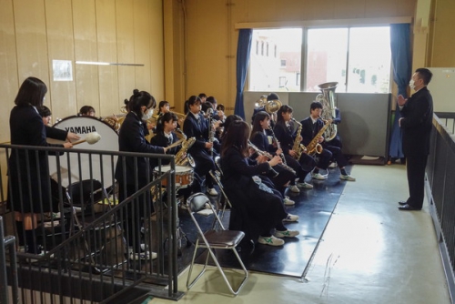祝電・祝詞披露に続き、新入生の宣誓がありました。最後に音楽部による校歌の演奏があり、入学式は終了しました。学校長より第1学年教職員の紹介の後、新入生は担任引率のもと、各教室で高校生活初めてのホームルームを行いました。