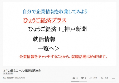 20日(月)から始まったオンラインでのS.H.R・調査アンケートは本日24日(金)で5日目となりました。Chromebookを貸与している一部のクラスでは、ZOOMを使用してリアルタイムで映像を繋ぎながらのS.H.Rも実施しています。22日(水)からのオンライン授業は3日目となり、昨日までと同様、全学年に1~3校時に分けて各科目の授業動画が配信されました。3年生には木曜日と金曜日に4校時が設けられており、本日は就職講座の授業動画が配信されました。