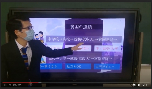 休校が長期化し日々状況が変化していく中で、教職員も生徒の皆さんが学習に取り組めるよう、いろいろな工夫をして動画を制作しています。普段とはちがう授業の受け方ですが、自由に一時停止・巻き戻しをしながら自分のペースで進められる、動画学習の利点を存分に生かして学習に取り組んでください。