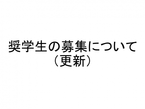 奨学生の募集について(更新) ■2020-09-08 写真は、自動的にスライド表示されます (ドラッグしてスライドも可) 奨学生募集一覧 (PDFファイル) 現在募集中の奨学金一覧です。詳細は事務室(078-741-1860)までお問い合わせください。※申込には期限がありますのでご注意ください。