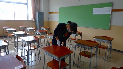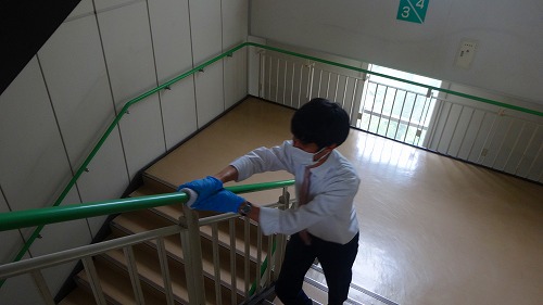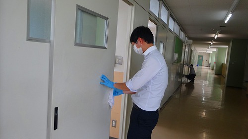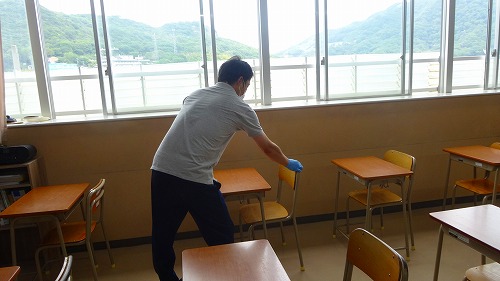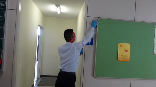 学校再開に向けて~校舎内の消毒作業~