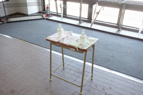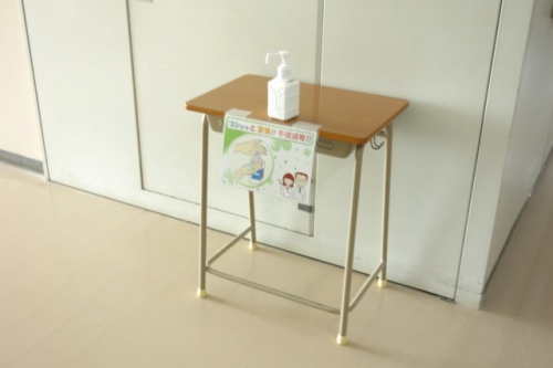 コロナウイルスの感染拡大防止のため、3月から長期間にわたって休校が続きましたが、本校では今日から6月学校再開に向けた登校が始まりました。生徒が登校するにあたっては対策として、全職員・生徒のマスク着用、ロッカールームの出入り口や教室前、廊下など校内各所への消毒用アルコールの設置、生徒使用場所の消毒作業等を実施しています。また、昨日には全教職員で校内の消毒作業も行いました。