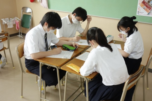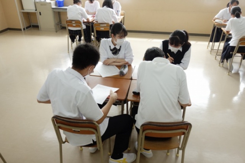 特進Sコースの1年生は、今日の土曜活動で「NASAゲーム」を行いました。これはチームビルディング活動の一つで、コンセンサスゲームともいわれるものです。グループの中で共通の目的を持ち、話し合いながら議論を重ねることで、最終的には全員のコンセンサス(=合意)を得ることを目的としています。今回は「宇宙船が不時着したと仮定し、今あるアイテムの中から母船にたどり着くために重要となるものを、重要度の高いものから順位をつける」という問題でした。このゲームでは、自分の意見をできるだけ相手にわかってもらえるように話し、合意を得ることが必要となるため、生徒同士が熱心に議論しながら意見を重ねていました。