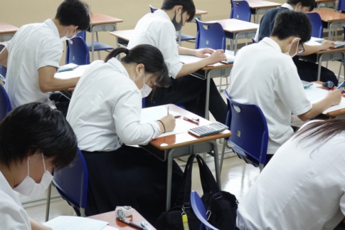 全商簿記実務検定に向けて、2・3年生を対象に16日から講習を実施していましたが、本日6月28日(日)に本番となる検定試験が行われ、生徒は真剣な眼差しで問題に取り組んでいました。