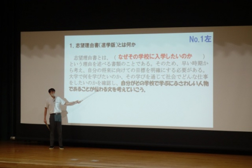 進学希望者を対象に行った集会では、主に志望理由書の書き方やWEB出願などについて話がありました。その中で以下のような点がポイントとして挙げられました。