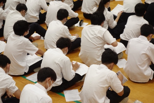 就職希望者も進学希望者も、今日の話を聴いて得たものをしっかりと自分のものにし、今後に活かしてください。1日1日を大切に、進路実現のために今できることから順番に取り組んでいきましょう。
