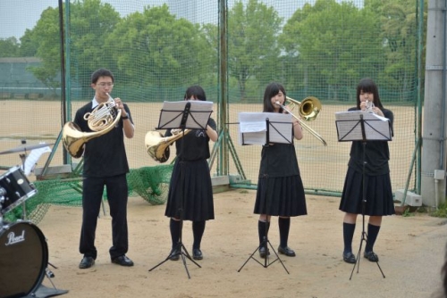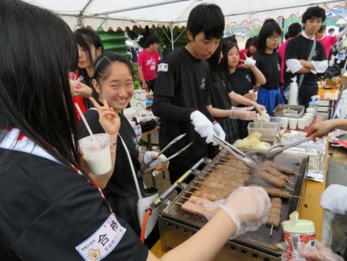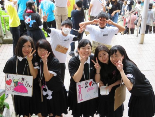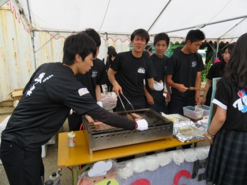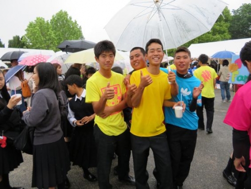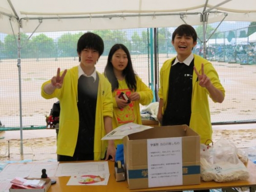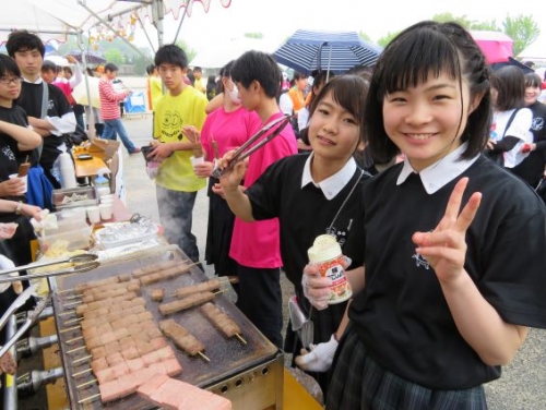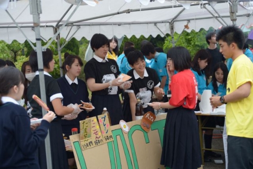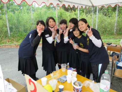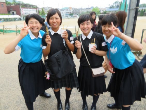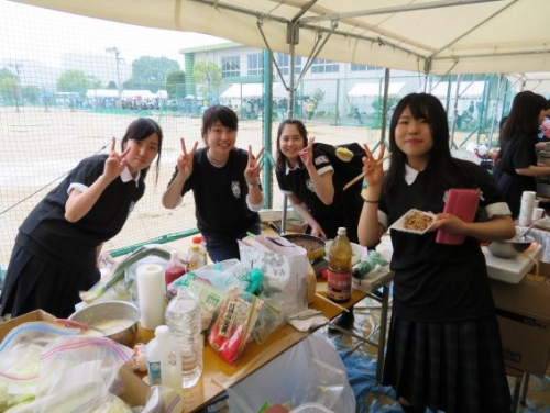グラウンドではたこ焼き、焼きそば、かき氷、フランクフルト、フルーツポンチ、揚げアイス、ベビーカステラなどたくさんの模擬店が並び、美味しそうな匂いが漂っていました。育友会のバザーや屋外でのバンド演奏なども行われ、通るスペースがないほど多くの方々で賑わっていました。