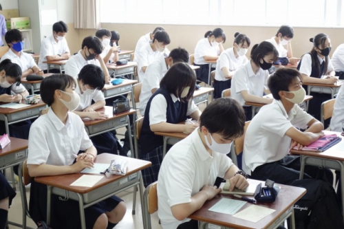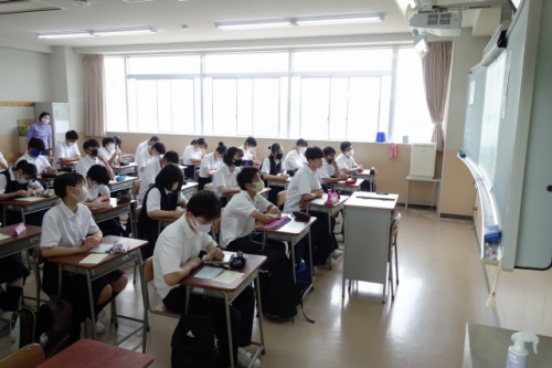 7月31日(金)、次期生徒会役員を決める生徒会役員改選を行いました。「この生徒会役員改選は神戸星城高校の未来を決める大事な選挙ということを忘れず、よく考えた上で投票してください」と、3年生の現生徒会役員による司会で始まりました。