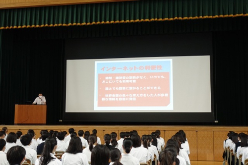 今日の講演会で、生徒は改めてネット世界の恐さや言葉の重み、軽はずみな行動がどれだけの結果を招いてしまうかということを再認識することができました。実際にあったネットでのトラブルの事例を挙げながら、わかりやすい講演をしていただきありがとうございました。