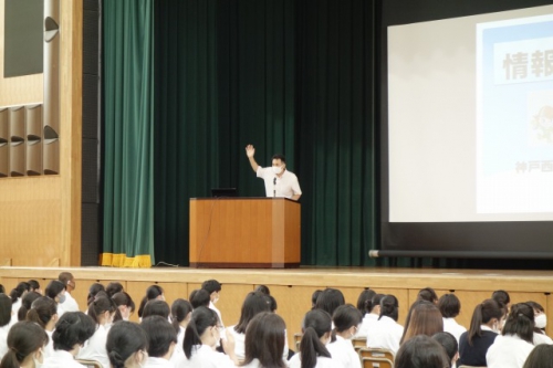 8月5日(水)の2時限目、兵庫県警察本部生活安全部少年課 神戸西武少年サポートセンターより講師の方をお招きし、1年生を対象に情報モラルに関する講演をしていただきました。