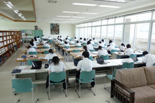 先週から夏休みに入り夏もいよいよ本番ですが、本校の大会議室では夏休みの間もほぼ毎日、小論文講座や面接・添削指導が行われています。本日も多くの3年生が自主的に参加し、問題に取り組みました。講座終了後もライブラリーに足を運び「自学自習」と、自ら鍛える3年生の姿は頼もしささえ感じられます。