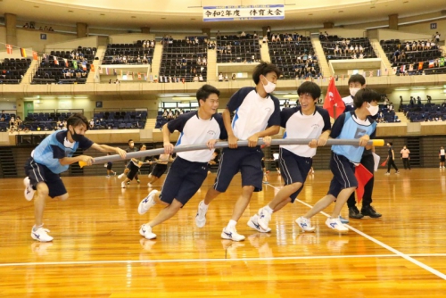 学年対抗での総合成績は、1位2年生、2位3年生、3位1年生との結果になりました。新型コロナウイルスの影響もあり例年通りとはいきませんでしたが、順位に関係なく全生徒が一生懸命参加していたことがすばらしく、本当に良い体育大会となりました。最後に校長先生から生徒に向けて「皆さん本当によく頑張ったと思います。特に3年生は高校生最後の体育大会に全力で取り組み、最後のソーラン節でも力いっぱいの演技を見せてくれました。これを機会に体を動かし、運動することの大切さを考え、また明日から進学や就職に向けて取り組んでいってください」との言葉がありました。