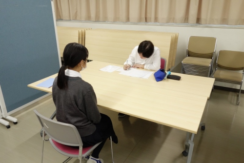 就職試験本番に向けて、面接練習に取り組む
