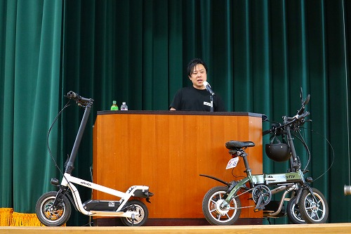 第3章 転機「100年企業を目指して」では、「車を作ろうとしたがノウハウが無いので、既存の車メーカーの過去を調べてみると、多くのメーカーが最初は補助エンジン付の自転車を作っていることがわかり、2輪から作ってみることにした」「計画はできていたが、当時円安だったこともあり資金があまり無く、製造しても売れなければ困るので、その点を考慮した結果クラウドファンディングのMakuakeで発表することになり、そこで集めた資金で製造が出来た」と話されました。また、クラウドファンディングを利用すると決めてからMakuakeで発表するまでも一筋縄ではいかなかったとのことで、成功の裏には多くの苦労があった事を知ることが出来ました。