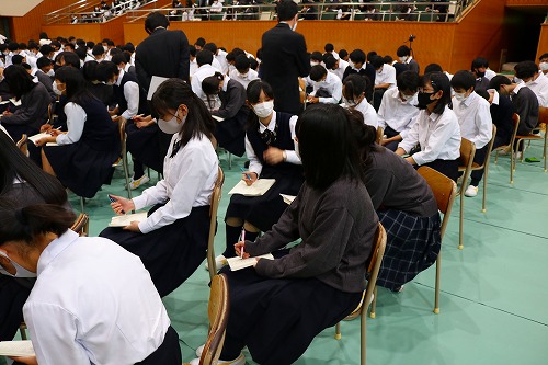 講演終了後は、生徒代表が「今日聞いたお話をこれから私たちが将来何をしたいのかを考える際の参考にしていきたいです」とお礼を述べ、学年主任の近藤先生が今回の講演を「鳴海社長の話は、『今、自分にあるもの、目につくもの、感じていることをどう捉えるかが重要であり、何も賢い人間や世渡り上手な人間が成功するのではない。物の見方一つで成功することは可能である』ということではないか。」と総括し、講演会は終了しました。