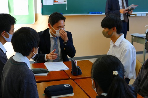 10月14日(水)6校時、1年生特進Sコースの生徒を対象に、一般社団法人関西ニュービジネス協議会の副会長の谷岡樹氏(八戸ノ里ドライビングスクール代表取締役)に講師としてお越し頂き、経営者レクチャー第4回目(全6回)となる「16歳からの起業塾」というテーマの授業が行われました。