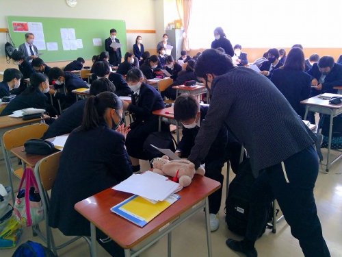 生徒たちも多くの先生が見学に来るので、少し緊張した面持ちでしたが、手を挙げて発言したり、発表したりと真面目に前向きに取り組んでいる様子が微笑ましく感じました。