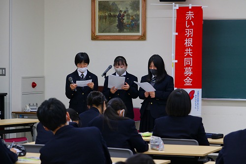 今回の募金活動は11月30日(月)から12月4日(金)の昼休みに校内にて実施します。赤い羽根共同募金を通して、「身近な地域の福祉を応援する」活動になるように、有志以外の生徒も積極的に協力していきます。
