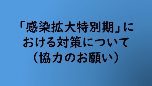 全国的に新型コロナウイルス感染者数が急激な増加傾向になり、兵庫県においても「感染拡大特別期」になっております。学校においては、これまでの感染予防対策を更に徹底し、可能な限り通常通りの教育活動が行えるよう努めてまいります。保護者の皆様・生徒のみなさんには、下の『「感染拡大特別期」における対策について』を確認いただき、感染防止対策にご協力をお願いいたします。