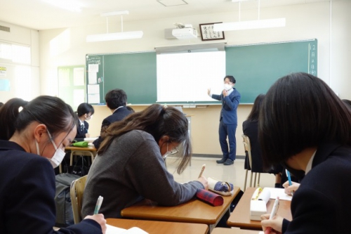 最後に、グリコの創業者である江崎利一氏の言葉「商売は2×2=5」を紹介され、「2×2が4なのは当たり前のこと。常にプラス1をして5にする事を考えることで、学校生活や受験勉強、社会生活において成功する確率が高くなる。自分だけではく、多くの人が幸せになれる未来をつくることにチャレンジしてほしい」とのお話で締めくくられました。