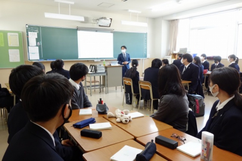 12月2日(水)、特進Sコースの1年生を対象に、第6回目となる「経営者によるレクチャー」が開講されました。これまで一般社団法人関西ニュービジネス協議会の副会長で、八戸ノ里ドライビングスクールの代表取締役でもある谷岡樹氏に講師としてお越しいただき授業を行っていましたが、それも今回が最終回でした。