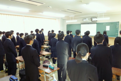 1月6日(水)、令和2年度3学期始業式を行いました。全学年各HR教室にプロジェクターでの投影と校内放送を通して行いました。校歌に続き、校長先生の「あけましておめでとうございます」との挨拶で始業式が始まりました。