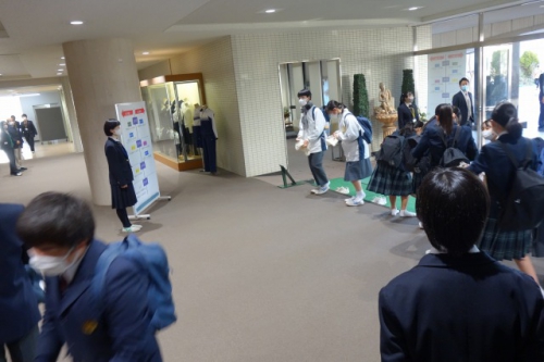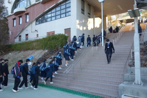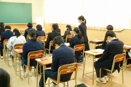 登校の際は緊張している様子の中学生でしたが、試験が終了し学校から出てくると緊張が解けてホッとした表情を浮かべていました。一般入試の面接は中止となりましたが、気持ちよくあいさつをしてくれる中学生ばかりでとても良い印象を受けました。