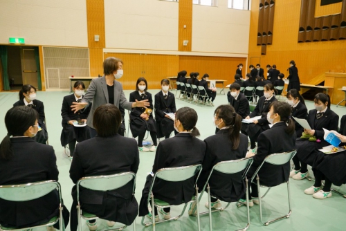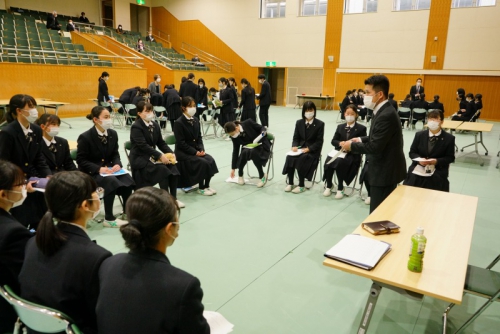 3月12日(金)、外部から講師の方をお招きし、本校の講堂にて就職を目指す新3年生を対象に「就職ガイダンス」を実施しました。立ち方・座り方・挨拶などの基本的なマナーから始まり、社会人になるにあたって必要な基礎知識、会社・企業が求めているもの、就職に向けた心構えや面接試験でのポイントなど、講師による講話や体験を通して1日かけて多くの就職に関する知識や考え方を学びました。