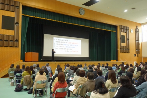 進学については、「本年度の進学状況・入試の特徴」、「入試方法の種類と傾向」、「学費について」、「学習指導について」と幅広く説明を行いました。また今後の取り組み方について、「受験の終わりが学習の終わりではない。そのことを理解してサポートしていく」「何事にも熱心に取り組11年にし、その1年間の学びが人生の大きな自身となるように、周囲の大人が支えていきましょう」とまとめました。