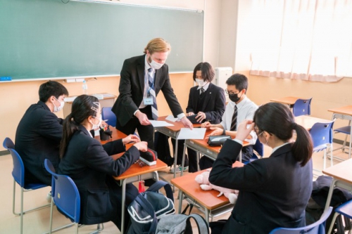 特進Sコースの新3年生を対象に、3月31日(水)から4月1日(木)までの2日間で「Englishキャンプ」を実施しました。本校が2年前から取り組んでいるこのプログラムは、株式会社アプリスの協力のもと外国人講師をお招きし、ネイティブ講師と会話をしながら英語を学ぶという、普段ではなかなかできない“英語漬け”の体験をすることで英語力やコミュニケーション能力を高めることを目的としています。