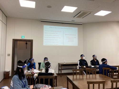 ・名探偵シャーロックホームズについて学び、先生方から出題されたQuizを解いていきました。虫眼鏡を使って、謎解きしている姿はシャーロックホームズそのものでした!