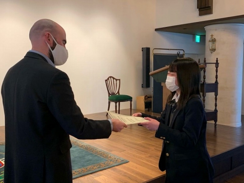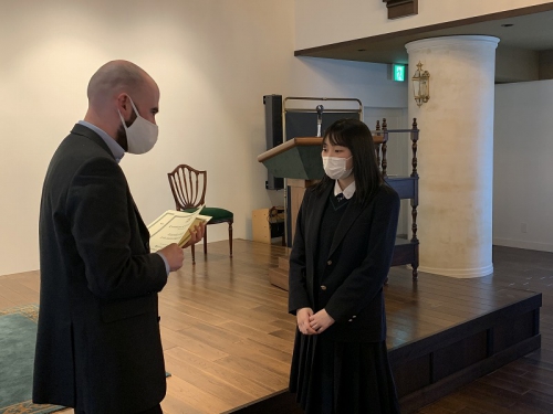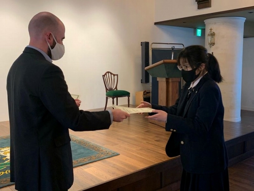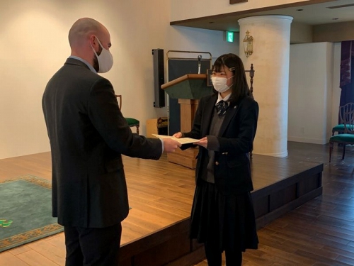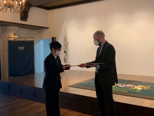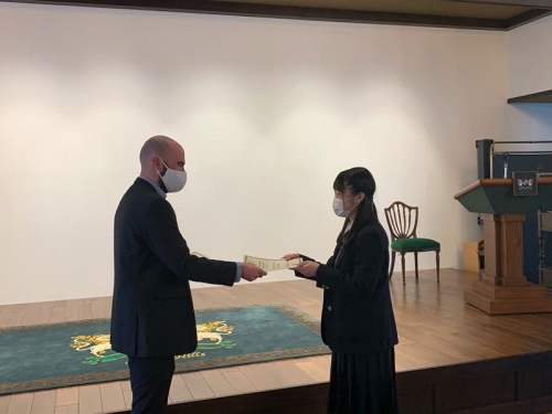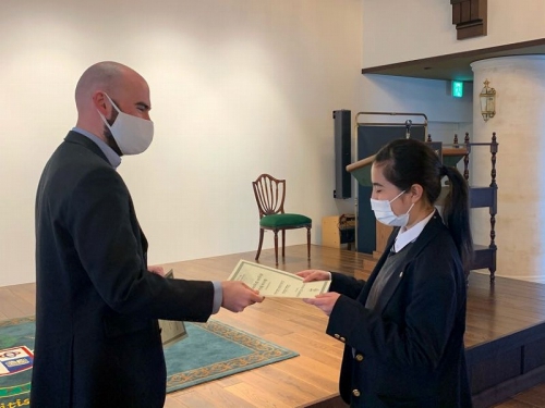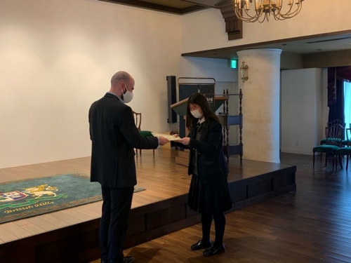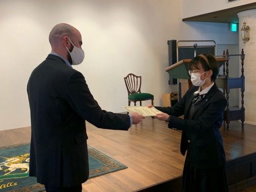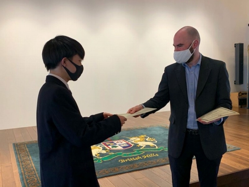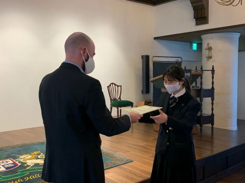 Closing Ceremonyの中で、お世話になった先生から手渡しで修了証書を頂く場面がありました。一人一人に「What is the most interesting lesson?」「What is the best memory?」と聞いており、生徒たちは思い思いの話をしていました。また、このBritish Hillsで学んだことを一時的に終わらさずに、学びを続けていくことが大切であることを言われていました。帰ってからも学びを止めずに、一年後に控えている受験に活かしていきましょう。