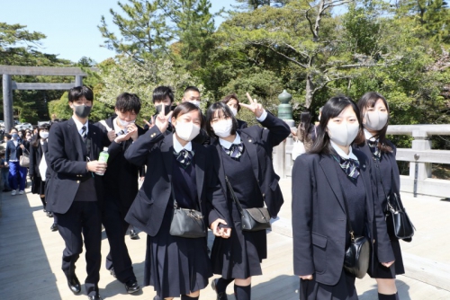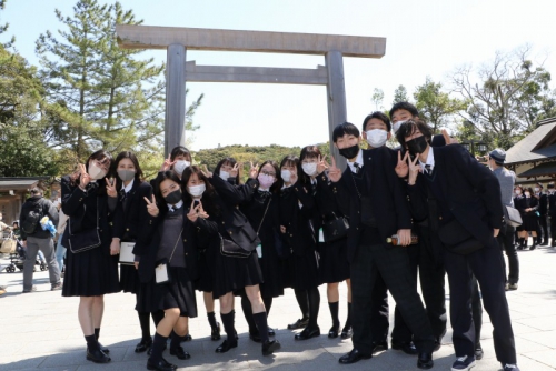 4月5日(月)から7日(水)にかけて、2年生(新3年生)が修学旅行を実施しました。今回の修学旅行は5日~6日の1班と6日~7日の2班に分かれての実施となりました。新型コロナウイルスの影響で延期となっていましたが、マスクの常時着用や消毒の徹底、検温などによる健康チェックなど、対策をしっかり行い万全を期して行ってまいりました。
