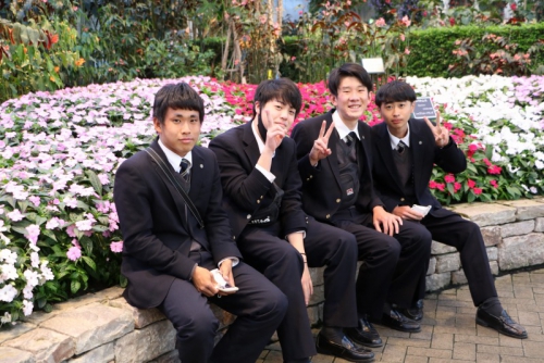 1班は名古屋へ向かうクラスと三重に向かうクラスに別かれました。2班の1組(特進Sコース)は、4月3日からの語学研修で、滞在していた福島から新幹線で名古屋に向かい、6日の15時30頃に合流しました。名古屋では名古屋港水族館及びその周辺の施設を、三重では伊勢神宮やおかげ横丁、2班での伊賀では陶磁器村での活動や、動物と触れ合えるもくもく手作りファームを巡りました。18時頃になばなの里で合流し、色とりどりの花やイルミネーションを楽しみ、夜はホテル「ガーデンホテルオリーブ」で夕食を取りました。