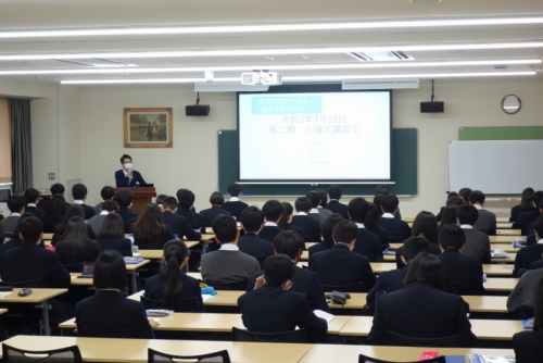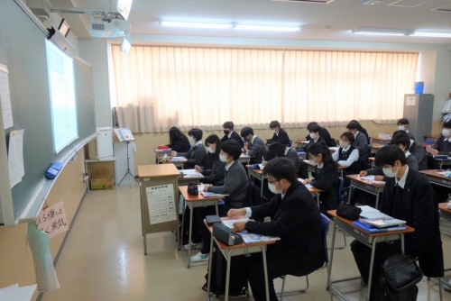 2年生の間にも小論文講座に取り組んできた進学希望の新3年生ですが、本日4月15日(木)、新年度になって初めての小論文講座が開講され、第2期がスタートしました。ついに3年生となり、これから本格的に受験生としての活動が始まる生徒たちは、真剣な面持ちで講座に取り組んでいました。