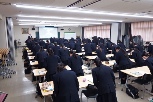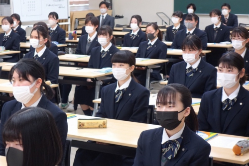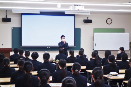 第1回目となる今回の講座では、担当教諭より昨年度の就職状況や今後の就職講座、求人票を受けるまでの流れなどについての話がありました。その中で進路指導担当教諭からは「これまでと比べて、今はホテル・アパレル関係などにおいて求人が少ないなど偏りがあるため、できるだけ職種の幅を広げてやりたいことを見つける」「多くの制約の中でできることをきちんとやっていれば、必ず就職できる」といった話がありました。次回からの就職講座では、作文指導・面接指導・求人票の見方・企業訪問担当者との面談などが予定されており、それらの内容に毎週火曜日の講座で取り組んでいきます。