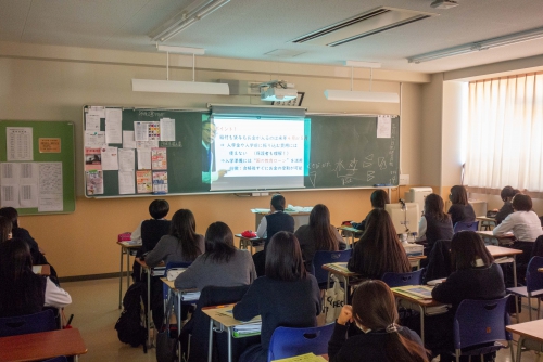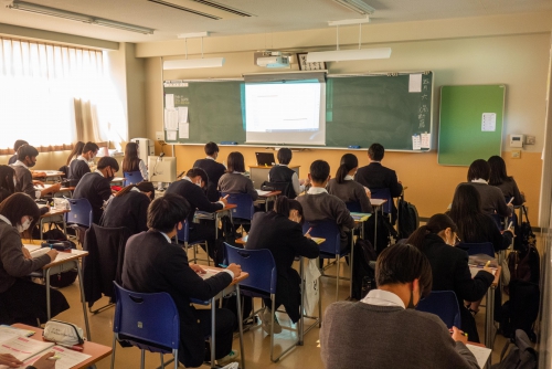 5月6日、進学に向けて取り組む3年生に向け、日本学生支援機構奨学金説明会を実施しました。スライド・動画を使いながら奨学金制度の説明、申し込みの流れや締め切りなどの注意点について詳しい解説がありました。生徒たちは貸与型と給付型の違いなど、制度に関する具体的な内容を聞きながら一生懸命メモを取っていました。