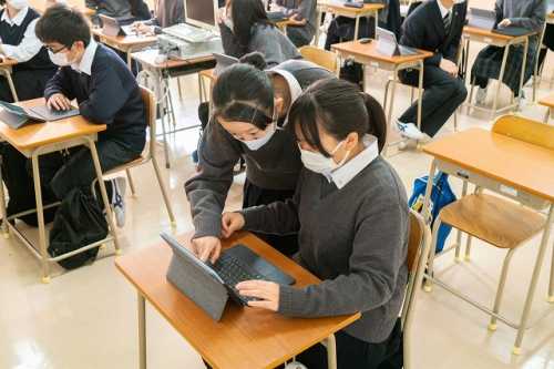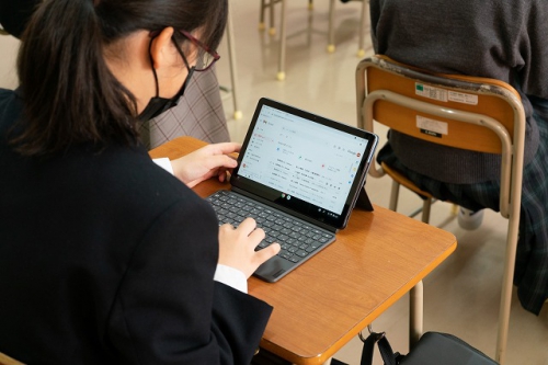 特進Sコースの1年生は本日の土曜活動において、1人1台ずつ与えられている「Chromebook」と、WEB学習サービス「スタディサプリ」の活用方法について講座を実施しました。ChromebookはGoogleが開発した「Chrome OS」が搭載されるノートパソコンで、比較的安価でありながら機種の性能への依存が少なく、動作が速いのが特徴です。また、オフィスソフトもGoogleのスプレッドシートやスライドなど、「Google Workspace」と呼ばれるクラウド上のWebベースのものを使用するため、異なる端末から同じファイルにアクセスしたり、クラス内での共有などもスムーズに行えます。