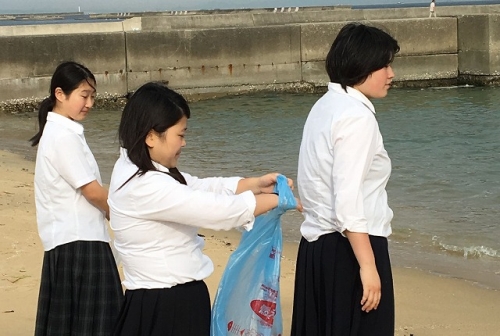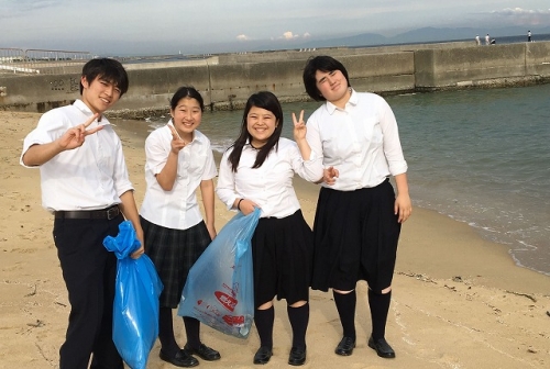 6月9日(金)、本校の生徒会の生徒4名は「須磨海水浴場マナーアップキャンペーン」に参加しました。須磨海水浴場の海開きが間近となり、少年による喫煙、オートバイの無免許運転や大麻等の薬物乱用の非行を防止するため、未成年自身がこのキャンペーンに参加し、利用マナーに対する関心を高めると共に、地域住民や海水浴場関係者の意識高揚の一助となることを目的としたものです。浜に打ち上げられたペットボトルや空き缶、ガラスなどを拾い、約1時間、各学校からの参加者が力を合わせ、たくさんのゴミが集まりました。