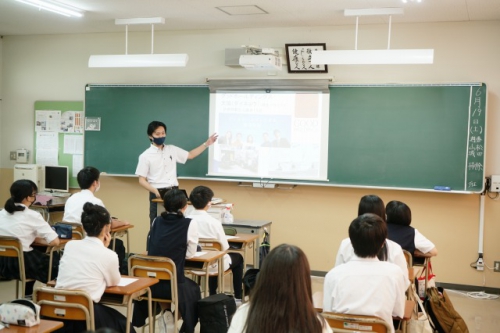 6月19日(土)、特進Sコース土曜活動において、1年生を対象に8月上旬に参加するインターンシップの説明会を行いました。本校では特進Sコースを新設した平成30年度より、特進Sコースの生徒を対象に夏休みの期間を利用してインターンシップを実施しています。昨年度は新型コロナウイルス感染症の影響で実施することができませんでしたが、一昨年度には特進Sコースの現3年生が実際に参加し、実社会への理解を深めました。