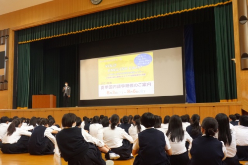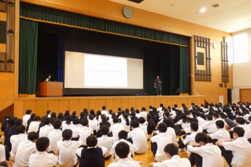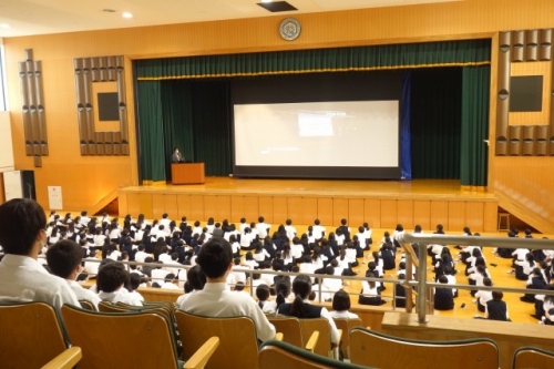 6時限目には、星城サマーキャンプ(体験型教育研修プログラム)の説明会を1年生に向けて実施しました。JTBの方より「タネノチカラ Seedbed Project(SDGs研究プログラム)」、日本旅行の方より「YOLO English Camp(語学、異文化交流プログラム)」「REDEE(プログラミング、eスポーツ等 体験プログラム)」についてお話をしていただき、最後に本校の担当教諭から「Life is Tech!サマーキャンプ(ITプログラミングキャンプ)」についてと、合計で4つのプログラムについて内容の説明を行いました。どれも内容の詰まった魅力のあるプログラムですので、積極的に参加して良い経験にしてもらいたいと思います。