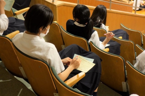 2年生4名、1年生4名の生徒会役員立候補者とそれぞれの応援弁士が全校生徒に熱いメッセージを送り、立候補者の意欲を示しました。演説内容は「元気で明るく、より活気のある星城を作りたい」「私たちの一度きりの高校生活を、少しでも楽しく充実したものに」「生徒の皆さん一人ひとりの意見をしっかりと聞き、生徒主体の学校にしていきたい」「ボランティア活動などのイベントを増やし、多くの人が活躍し輝ける場を作っていきたい」などで、謙虚で元気のある力強い演説や具体的な取り組みを含めた心のこもった演説に「星城愛」と頼もしさを感じました。また立候補者だけでなく、演説会の企画・進行・司会を担当した3年生の現生徒会役員の姿も責任と自覚に溢れていました。立候補者のスローガンをこちらに紹介します。