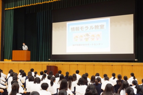 7月16日(金)、兵庫県警察本部生活安全部少年課 神戸西武少年サポートセンターより講師の方をお招きし、1年生を対象に情報モラルに関する講演をしていただきました。