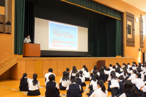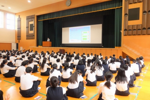 今日の講演会で、生徒は改めてネット世界の恐さや言葉の重み、軽はずみな行動がどれだけの結果を招いてしまうかということを再認識することができました。実際にあったネットでのトラブルの事例を挙げながら、わかりやすい講演をしていただきありがとうございました。