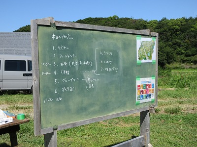 到着後すぐに何も話さずに10分間各自で農地を散策。その後セミナー、フィールドワークが始まりました。