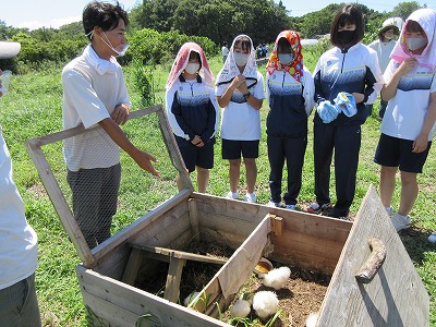 暑い中でしたが、生徒たちは熱心に話を聞き積極的に質問を投げかける姿が見られました。農を通して持続可能な社会の実現に向けた学びができました。生徒たちにとって普段なかなかできない体験ができ、有意義な一日となりました。