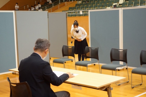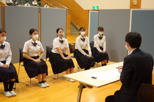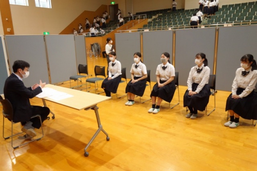学年主任から「面接は回数を重ねることで上手くなる。それを今日の模擬面接で再認識し、本番までに経験を重ねてほしい」といった話がありました。間近に迫った就職試験本番に向けて自分に最後の磨きをかけ、自信をもって試験当日を迎えられるようにしてください。