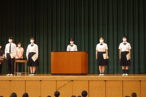 9月6日(月)、生徒会役員・学級委員任命式を行いました。新生徒会役員・学級委員任命の後、新生徒会長から挨拶がありました。